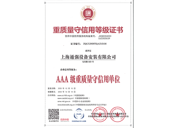 上海通強設備安裝有限公司注冊資金2000萬元,資產(chǎn)總量為100000萬元的專業(yè)設備安裝公司,公司專業(yè)從事工業(yè)與民用建筑的設備安裝、非標設備的制作、鋼結構制作安裝、中央空調(diào)系統(tǒng)的安裝,水電及管道的安裝。經(jīng)過20多年艱苦創(chuàng)業(yè)現(xiàn)已成為一個具有國家二級安裝資質,獲得上海市“重合同,守信用”的施工單位。